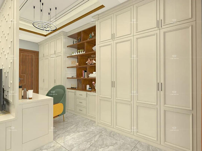 入戶采用的是子母門的設計,配合寬闊的走廊,旁邊是橫排的入戶柜,配合經典的雕花裝飾,所有的搭配均體現了主人豪邁優雅的氣質。